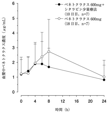 用量漸増期最終日(アザシチジン併用の場合400mg到達時。シタラビン少量療法併用の場合600mg到達時)