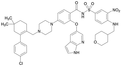 他の抗悪性腫瘍剤との併用において、通常、成人にはベネトクラクスとして、用量漸増期は第1週目に20mg、第2週目に50mg、第3週目に100mg、第4週目に200mg、第5週目に400mgをそれぞれ1日1回、7日間食後に経口投与する。その後の維持投与期は、400mgを1日1回、食後に経口投与する。なお、患者の状態により適宜減量する。
