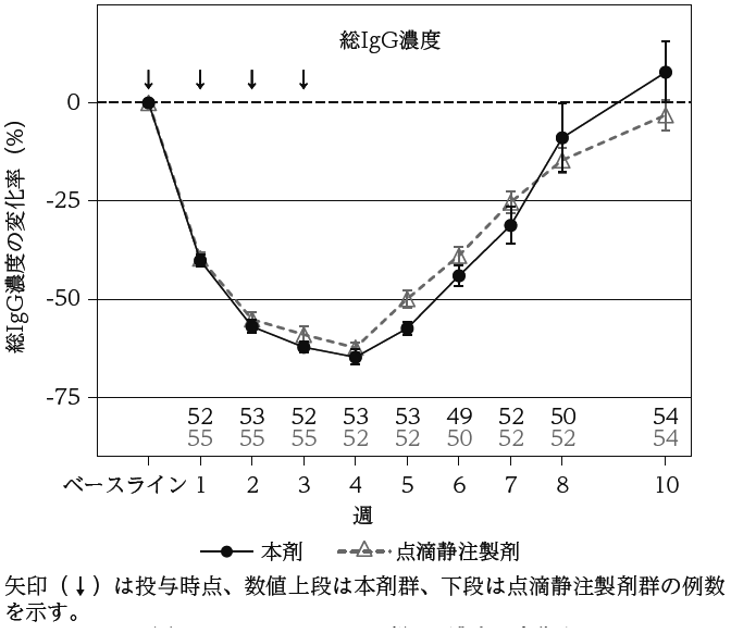 9) 社内資料:総IgGのベースラインからの変化(2024年1月18日承認、CTD 2.5.4.1)