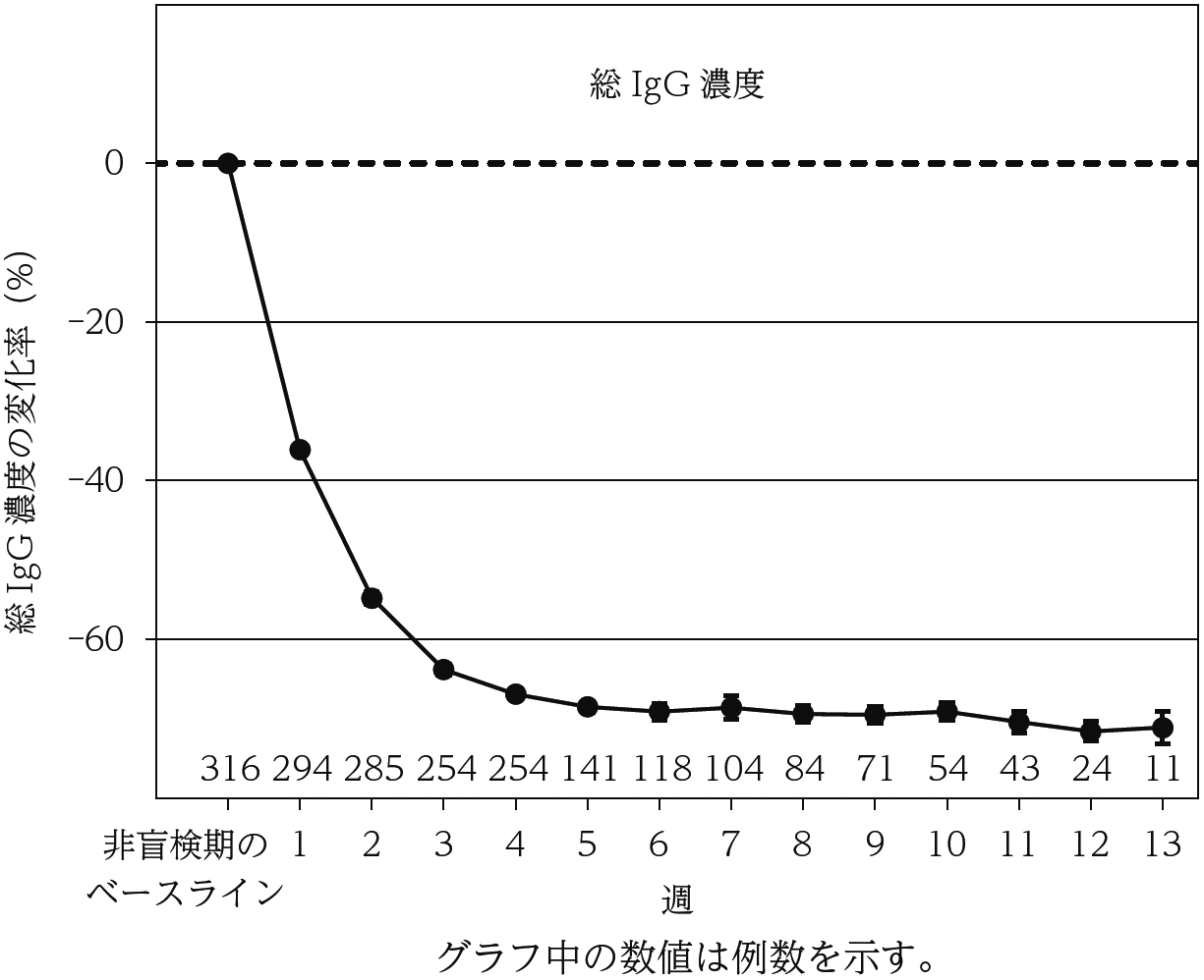 エフガルチギモド アルファ20mg/kgをサルに単回皮下投与したとき、血清中IgG濃度の減少が認められた19) 。