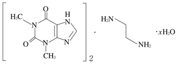 アミノフィリン水和物は白色~微黄色の粒又は粉末で、においはないか、又はわずかにアンモニア様のにおいがあり、味は苦い。本品は水にやや溶けやすく、メタノールに溶けにくく、エタノール(95)又はジエチルエーテルにほとんど溶けない。本品1gに水5mLを加えて振り混ぜるとき、ほとんど溶け、2~3分後、結晶が析出し始める。この結晶は少量のエチレンジアミンを追加するとき溶ける。本品は光によって徐々に変化し、空気中に放置するとき、次第にエチレンジアミンを失う。