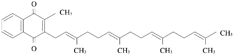 抗凝血薬ジクマロール50mg/kg/日を10日間反復投与によるマウスの出血死を、K1群は5mg/kg/日経口投与の併用により50%阻止したのに対して、K2群ではK1群と同量の経口投与で100%阻止した11)。