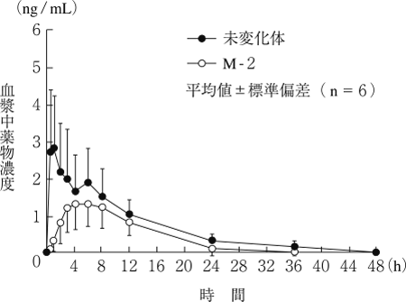 健康成人6例にアトルバスタチン錠10及び40mgを単回経口投与したとき、血漿中にアミド結合位置のベンゼン環の4位の水酸化体(M-1)及び2位の水酸化体(M-2)の2種類が確認されているが、血漿中主活性代謝物はM-2であった7)。アトルバスタチンの主要代謝臓器は肝臓であり、M-1及びM-2はCYP3A4によって生成することが明らかにされている7)。