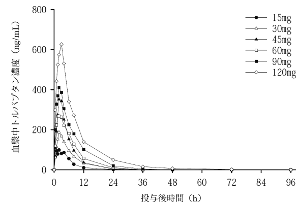 通常、成人にはトルバプタンとして15mgを1日1回経口投与する。