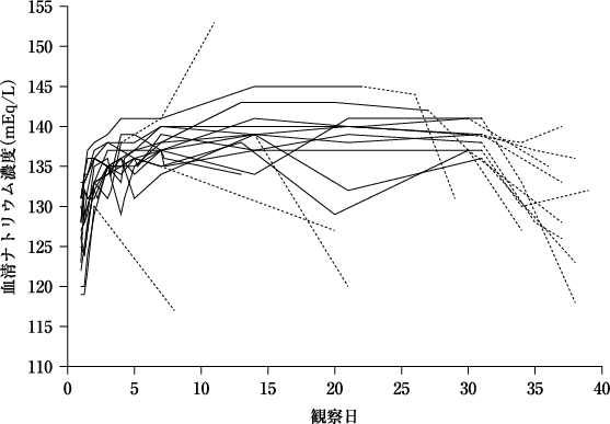 24時間以内に12mEq/Lを超える上昇がみられた場合には、投与を中止すること。急激な血清ナトリウム濃度の上昇により、浸透圧性脱髄症候群を来すおそれがある。,,,,,,,