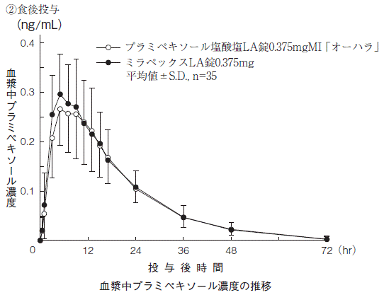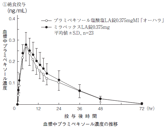 3) 健康成人での薬物動態試験(ミラペックスLA錠:2011年4月22日承認、CTD2.7.6.4)