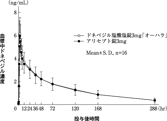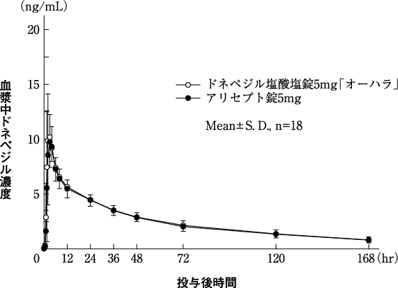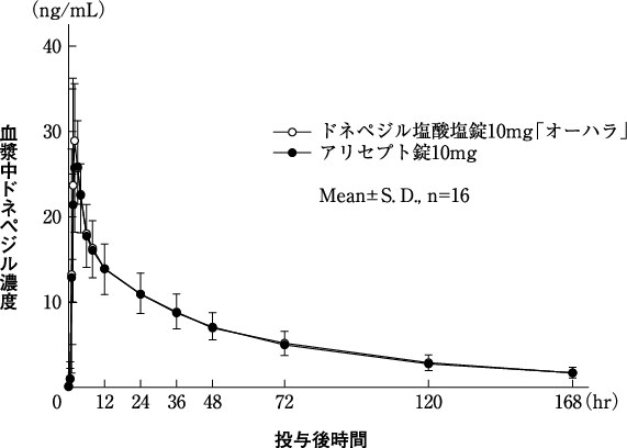 2) 健康成人における薬物動態(反復経口投与試験)(アリセプト錠:1999年10月8日承認、申請資料概要ヘ-3-(1))