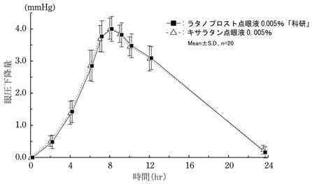 健康成人又は緑内障・高眼圧症患者にラタノプロスト点眼液を点眼した場合、瞳孔径、視力、血圧及び脈拍数に影響を及ぼすことなく眼圧を下降させた8),9),10),11),12)。