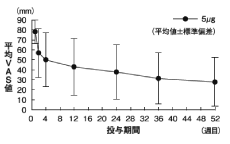 *抗ヒスタミン薬又は抗アレルギー薬による治療が奏効しない難治性のそう痒症を有する慢性肝疾患患者※122例を対象に、1日1回、ナルフラフィン塩酸塩(カプセル)5μgを52週間経口反復投与した際の有効性を、VASを用い、オープン試験により検討した。その結果、投与前後でのVAS変化量において、ナルフラフィン塩酸塩(カプセル)の有効性が確認された22)。