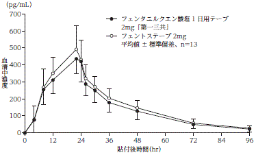 14) フェンタニル経皮吸収型製剤からの切り替え貼付試験(フェントステープ:2010年4月16日承認、CTD2.7.6.6)