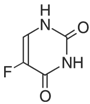 5-FUの抗腫瘍効果は主としてDNAの合成阻害に基づくと考えられており、腫瘍細胞内に取り込まれた5-FUがウラシルと同じ経路で代謝を受けて生じるF-deoxy UMPがチミジル酸合成酵素上で、deoxy UMPと拮抗してチミジル酸の合成を抑制することにより、DNAの合成が阻害されると考えられている。他方、5-FUはウラシルと同じくRNAにも組み込まれてF-RNAを生成することや、リボゾームRNAの形成を阻害することも知られており、これらのことも本剤の抗腫瘍効果発現に関与すると考えられている15),16)。