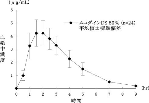 1) 社内資料 :L-カルボシステインDS50%の生物学的同等性試験