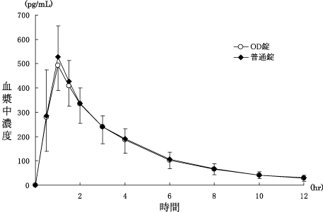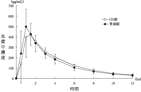 健康成人男性を対象としたイミダフェナシン錠0.1mg(普通錠)及びイミダフェナシンOD錠0.1mg(口腔内崩壊錠)のクロスオーバー法による水なし(24例)及び水あり(24例)の空腹時単回経口投与における同等性試験において、それぞれ生物学的に同等であることが確認された1)。