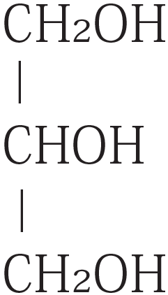日本薬局方グリセリンはグリセリン(C3H8O3)84~87%を含む無色澄明の粘性の液で、味は甘い。本品は水又はエタノール(99.5)と混和する。本品は吸湿性である。
