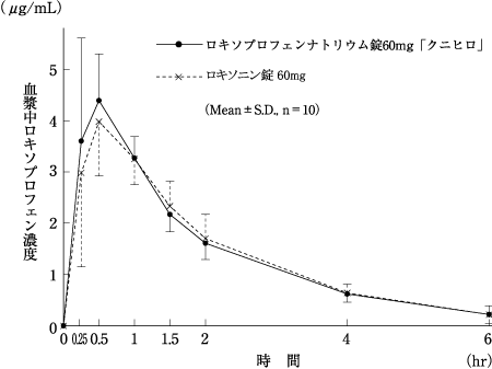 通常、成人にロキソプロフェンナトリウム(無水物として)1回60㎎を頓用する。
