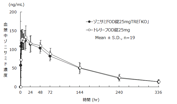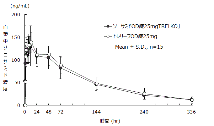 4) 社内資料:ゾニサミドOD錠25mgTRE「KO」の生物学的同等性試験
