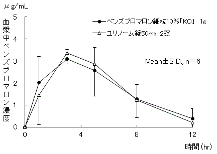 3) 社内資料:ベンズブロマロン細粒10%「KO」とユリノーム錠との生物学的同等性試験