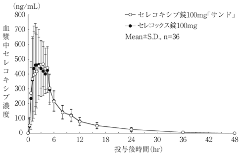 9) 社内資料:生物学的同等性試験(セレコキシブ錠100mg「サンド」)