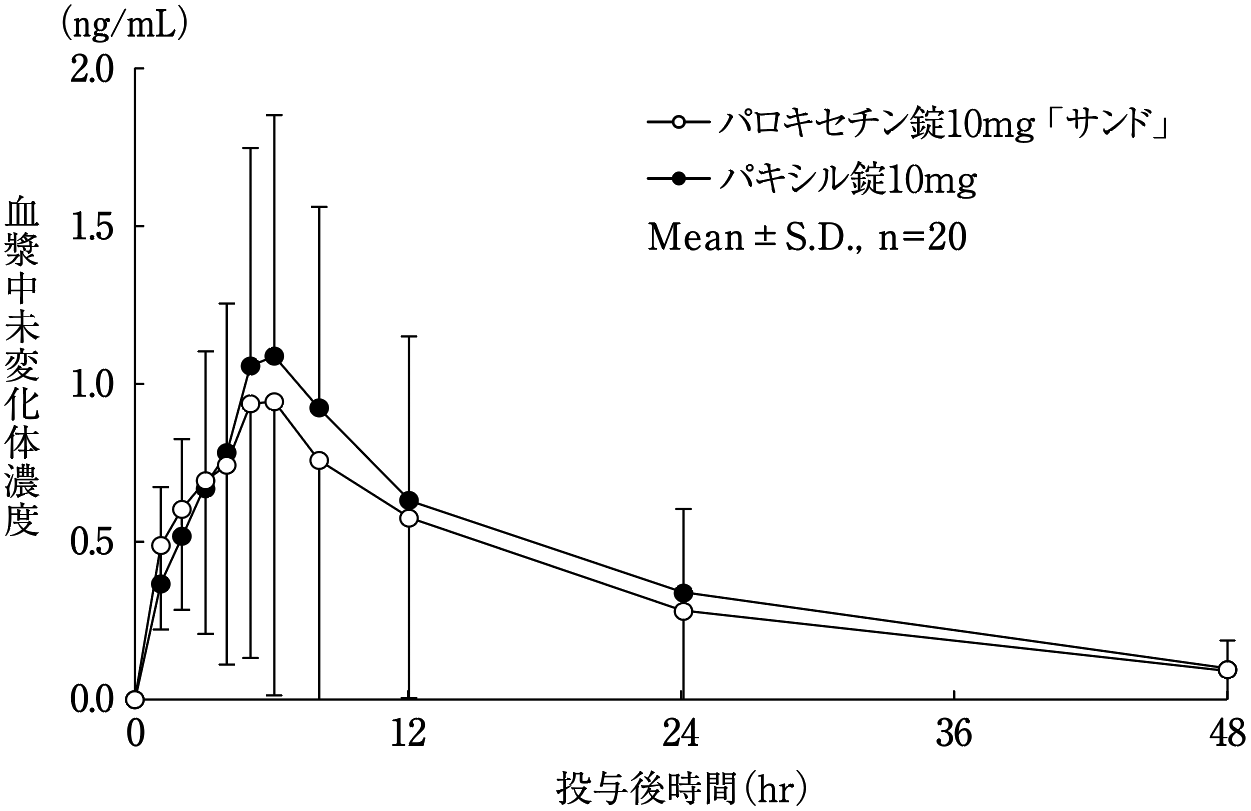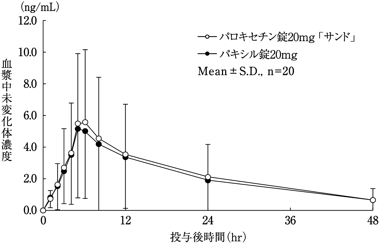 7) 社内資料:生物学的同等性試験(パロキセチン錠20mg「サンド」)