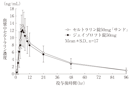 16) 社内資料:生物学的同等性試験(セルトラリン錠50mg「サンド」)
