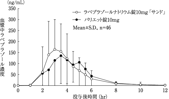 4) 社内資料:生物学的同等性試験(ラベプラゾールナトリウム錠10mg「サンド」)