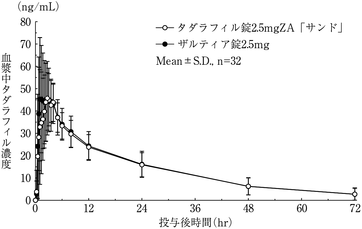 20) 社内資料:生物学的同等性試験(タダラフィル錠2.5mgZA「サンド」)