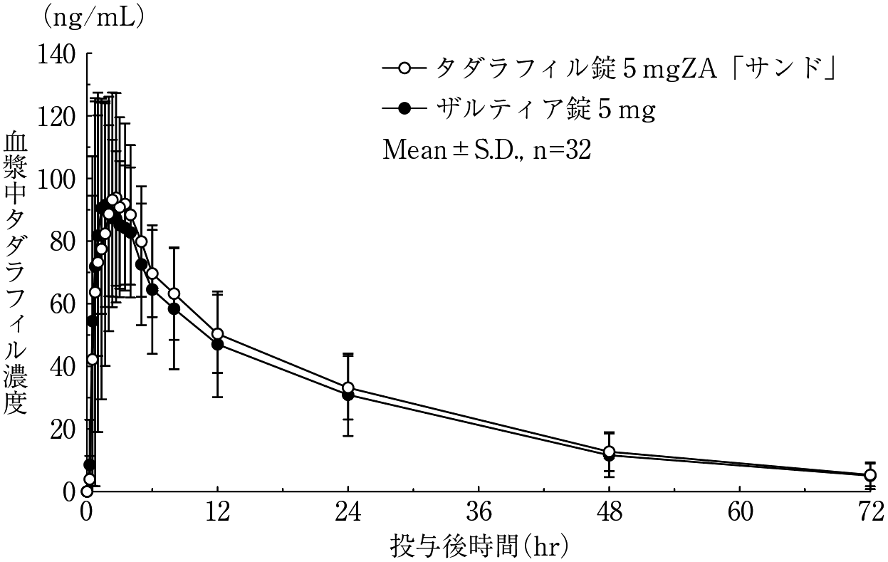 21) 社内資料:生物学的同等性試験(タダラフィル錠5mgZA「サンド」)