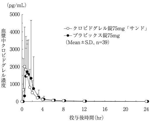 11) 社内資料:生物学的同等性試験(クロピドグレル錠75mg「サンド」)