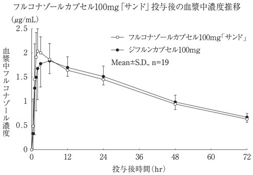 44) 社内資料:生物学的同等性試験(フルコナゾールカプセル100mg「サンド」)