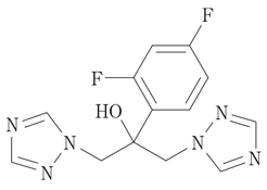 フルコナゾールは真菌細胞の14-α-ラノステロールの脱メチル化に関与するチトクロームP450を阻害し、膜成分のエルゴステロール生合成を抑制することにより抗真菌作用を示す。また、真菌の酵母型発育相及び菌糸型発育相のいずれに対しても発育抑制を示す。フルコナゾールのエルゴステロール生合成阻害作用は真菌に選択的で、ラット肝細胞でのステロール生合成に対する影響は少ない53),54)。