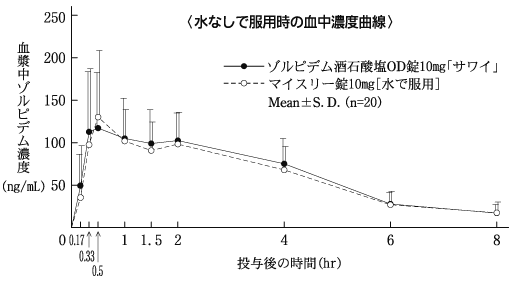 ※マイスリー錠10mgは水で服用(Mean±S.D., n=20)