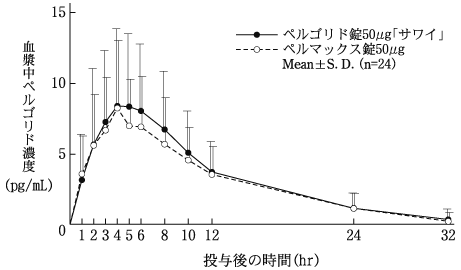 ペルゴリド錠250μg「サワイ」は溶出挙動に基づき、ペルゴリド錠50μg「サワイ」と生物学的に同等とみなされた5)。