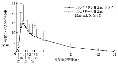 患者の状態を観察しながら少量(1回0.5mg)から投与するなど、慎重に投与すること。高齢者では錐体外路症状等の副作用があらわれやすく、また、腎機能障害を有する患者では最高血漿中濃度が上昇し、半減期が延長することがある。