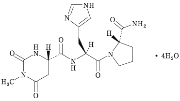 健康成人にタルチレリン水和物錠5mgを単回経口投与した場合、血漿及び尿中に代謝物としてプロリンアミドから脱アミノしたアシド体が認められた1),7)。