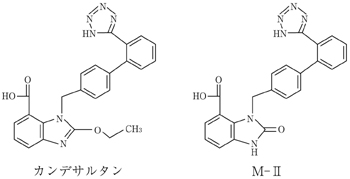 カンデサルタン シレキセチルはカルボキシルエステラーゼにより活性代謝物カンデサルタンに代謝され、さらに一部がCYP2C9により非活性代謝物M-Ⅱに代謝されるが、本態性高血圧症患者にカンデサルタン シレキセチルを投与したときのM-Ⅱの血中濃度及び尿中排泄率はカンデサルタンの血中濃度及び尿中排泄率に比べ低く、CYP2C9の遺伝的多型によるカンデサルタンの血中濃度への影響は少ないと考えられる5)。また、カンデサルタンはCYP1A1、1A2、2A6、2B6、2C8、2C9、2C19、2D6、2E1、3A4の代謝活性を阻害しない9)(in vitro)。