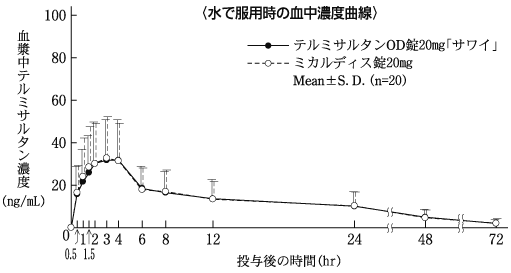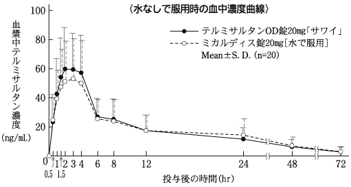 ※ミカルディス錠20mgは水で服用(Mean±S.D.)