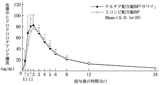ヒドロクロロチアジド:作用機序の異なる降圧作用により互いに協力的に作用する。