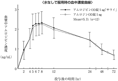 アムロジピンOD錠10mg「サワイ」は溶出挙動に基づき、アムロジピンOD錠5mg「サワイ」と生物学的に同等とみなされた16)。