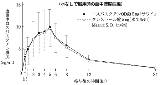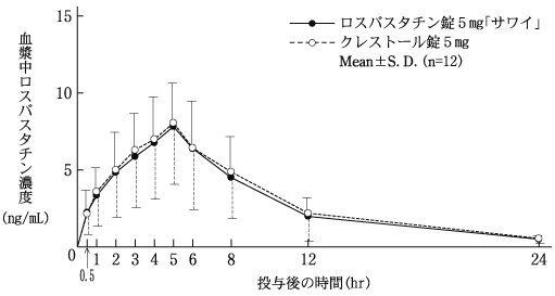 5) 単回投与後の血漿中濃度(クレストール錠:2005年1月19日承認、申請資料概要へ3.3.1.2)