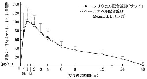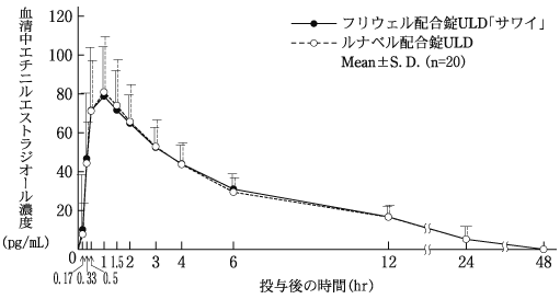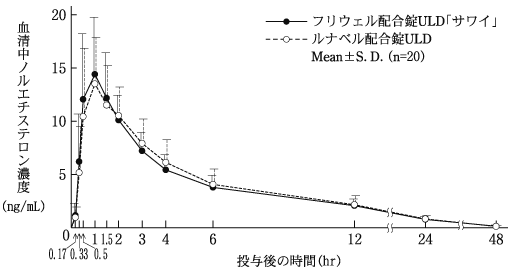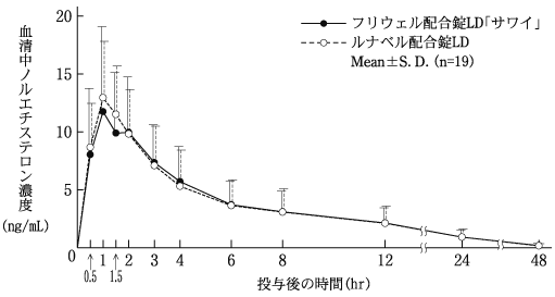 2) 健康成人女性への単回経口投与後の血中濃度検討(ルナベル配合錠:2008年4月16日承認、申請資料概要2.7.6.1)