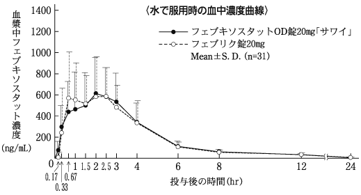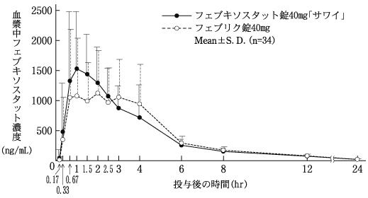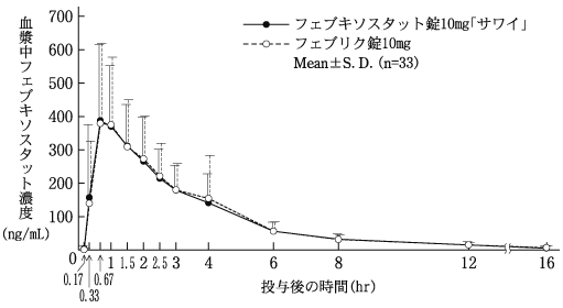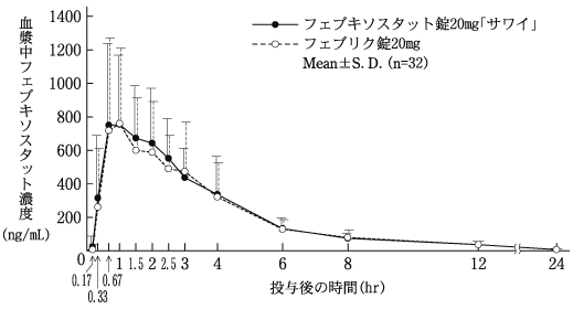 5) 血漿中濃度(健康成人、単回)(フェブリク錠:2011年1月21日承認、申請資料概要2.7.6.5)