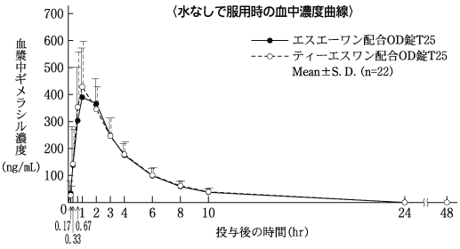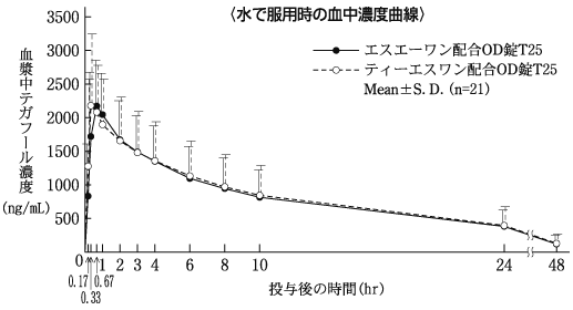 本剤中のギメラシルにより、併用されたフルオロウラシルあるいは併用されたこれらフッ化ピリミジンから生成されたフルオロウラシルの異化代謝が阻害され、著しく血中フルオロウラシル濃度が上昇する。