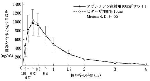 1) 国内のMDS患者にアザシチジンを皮下または静脈内投与した場合の薬物動態(ビダーザ注射用:2011年1月21日承認、申請資料概要2.7.1.2.2)