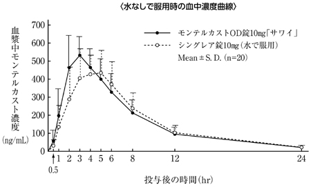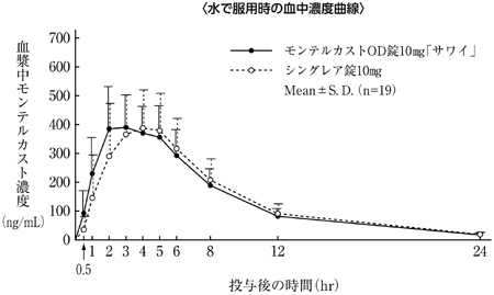 モンテルカストOD錠5mg「サワイ」は溶出挙動に基づき、モンテルカストOD錠10mg「サワイ」と生物学的に同等とみなされた24)。
