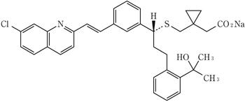 Monosodium {1-[({(1R)-1-{3-[(1E)-2-(7-chloroquinolin-2-yl)ethenyl]phenyl}-3-[2-(2-hydroxypropan-2-yl)phenyl]propyl}sulfanyl)methyl]cyclopropyl}acetate