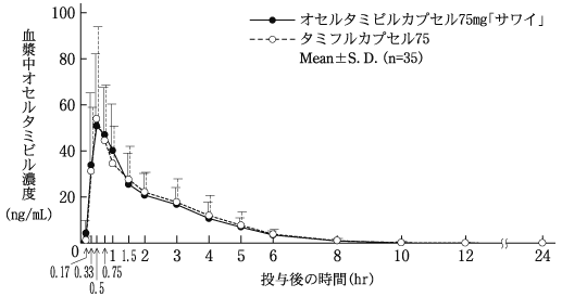 通常、成人及び体重37.5kg以上の小児にはオセルタミビルとして1回75mgを1日2回、5日間経口投与する。