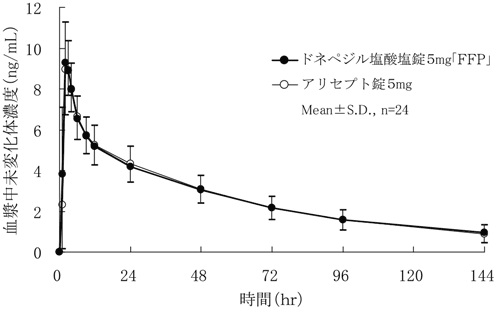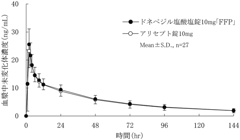 1) 健康成人における薬物動態(単回経口投与試験)(アリセプト錠:1999年10月8日承認、申請資料概要ヘ.3.(1))