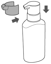 使用後は必ず頭部を押し下げて密栓をし、青色カバーを装着すること。