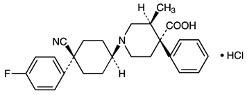 (-)-(3S, 4R)-1-[cis-4-cyano-4-(4-fluorophenyl)cyclohexyl]-3-methyl-4-phenylpiperidine-4-carboxylic acid monohydrochloride