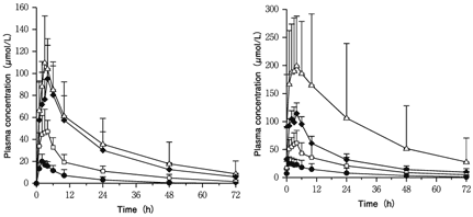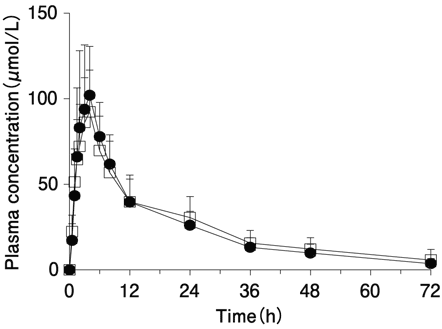 Tmaxは中央値[最小値~最大値]を、それ以外は平均値±標準偏差を示す。※ n=6